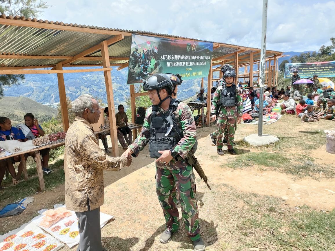 Lanny Jaya, siber.news — Prajurit Pos Popome Satgas Yonif Mekanis 203/AK terus menggencarkan kegiatan sosial bersama dengan Tokoh Masyarakat maupun Kepala Suku Desa Popome melalui acara pelayanan kesehatan gratis serta makan-makan bersama dengan warga di Desa Popome, Kabupaten Lanny Jaya, Senin (20/02/2023).