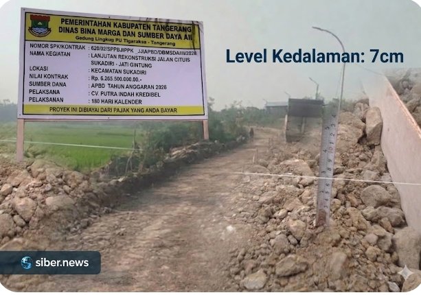 siber.news – Proyek Lanjutan Rekonstruksi Jalan Cituis Sukadiri senilai Rp6,2 miliar yang dikerjakan oleh CV. Putra Indah Kredibel kini diterpa dugaan miring. Temuan kedalaman galian yang tidak mencapai standar teknis memicu dugaan kuat adanya praktik pengurangan volume material secara sistematis.