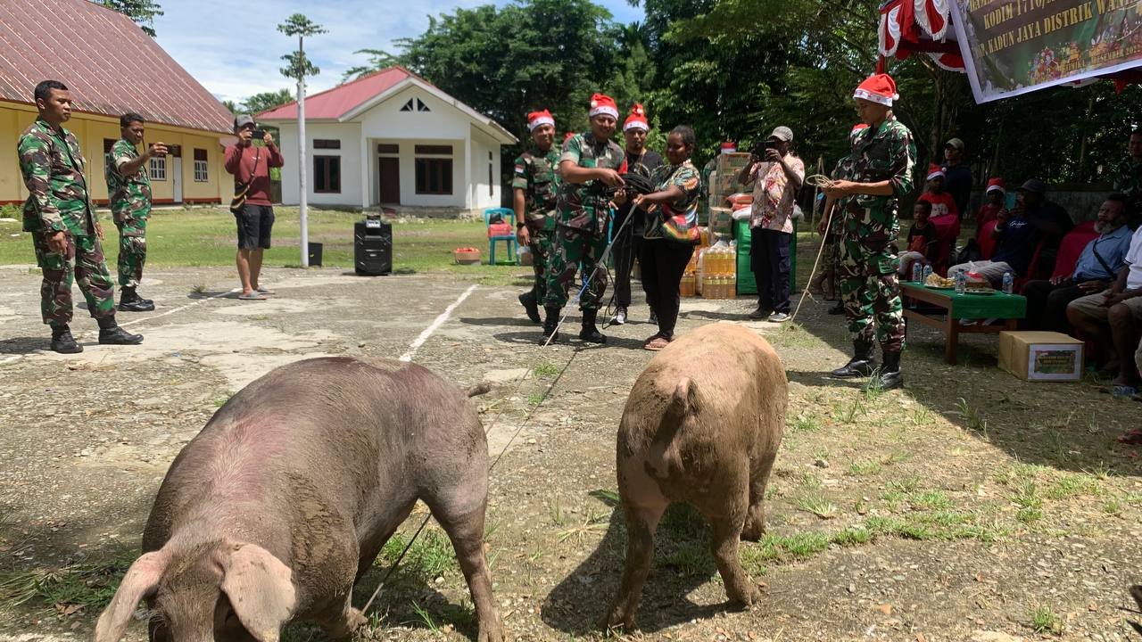 Kegiatan tersebut pun dihadiri oleh Danramil 1710-02/Timika dan Pasiter Kodim 1710/Mimika serta dihadiri sekitar 30 orang masyarakat. Kegiatan diawali dengan doa yang dibawakan oleh Pdt. Yuren Dwijangge selanjutnya Bapak Nasil Nirigi menyampaikan terima kasih kepada Dandim 1710/Mimika dan jajaran yang sering memperhatikan masyarakat di Kp. Kadun Jaya khususnya pada saat ini menjelang Natal dengan memberikan banyak bantuan.