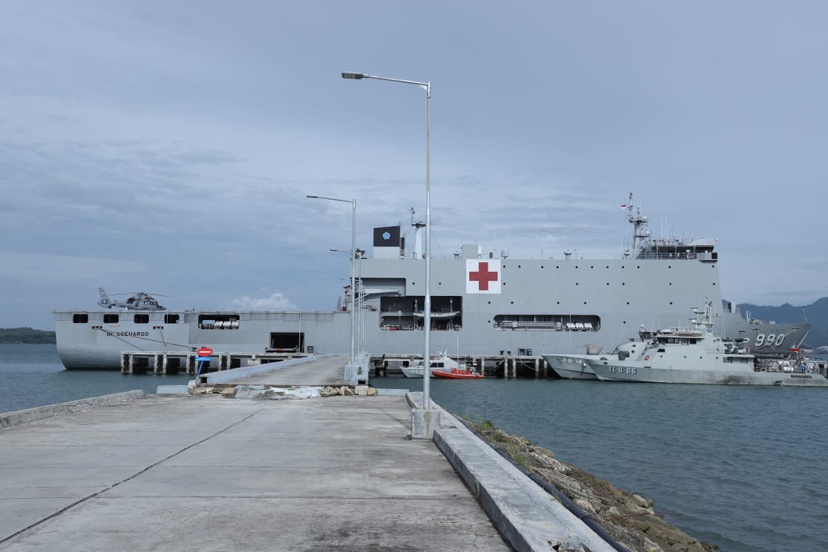 Mamuju, Siber. Guna menangani para pasien korban gempa bumi yang terjadi di Kabupaten Majene dan Mamuju, Sulawesi Barat, dengan kekuatan Magnitudo (M) 6,2 yang terjadi beberapa waktu lalu, Tentara Nasional Indonesia (TNI) mengirimkan rumah sakit apung KRI dr. Soeharso 990.