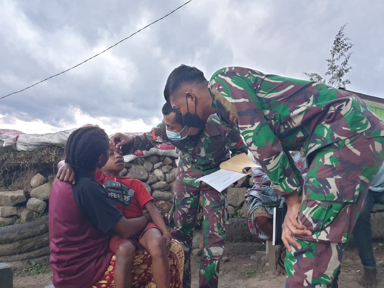 Satgas TNI Membantu Mengobati Masyarakat Yang Sedang Sakit di Pegunungan Tengah Papua