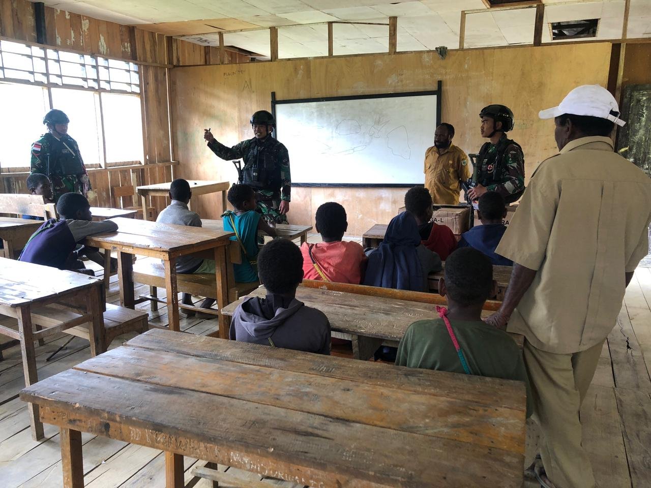 Hal tersebut disampaikan oleh Danpos Balingga Lettu Inf Faisal Ramadhan dalam keterangannya di Distrik Balingga. “Minimnya Tenaga Pendidik yang ada di SD Inpres Brume ini membuat kami turut untuk membantu mengajar dan memberikan wawasan kebangsaan, diharapkan dengan kehadiran kami dapat menambah pengetahuan dan semangat belajar serta meningkatkan rasa cinta tanah air dari murid-murid SD Inpres Brume,” ujar Lettu Inf Faisal Ramadhan.