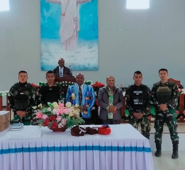 Nduga, Siber | Personel Pos Napua Satgas Yonif Raider 321/GT/13/1 Kostrad yang beragama Nasrani turut hadir pada acara ibadah bersama seluruh Klasis Se-Jayawijaya yang diselenggarakan di Gereja Kemah Injil Napua Sinonde, Distrik Napua, Kabupaten Jayawijaya, Papua, Minggu (28/08/2022).