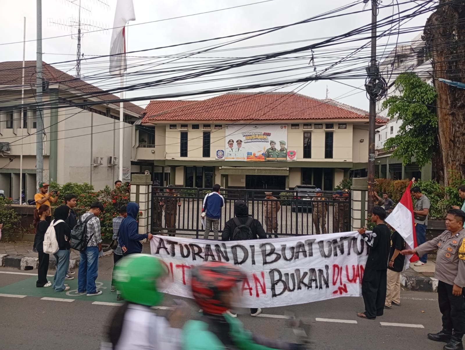Aksi protes ini berlangsung panas. Di depan pintu gerbang yang dijaga ketat, mahasiswa melakukan aksi bakar ban sebagai simbol matinya keadilan di Kota Tangerang. Asap hitam membumbung tinggi, seiring dengan orasi tajam yang mempertanyakan integritas pimpinan Satpol PP dan jajarannya.