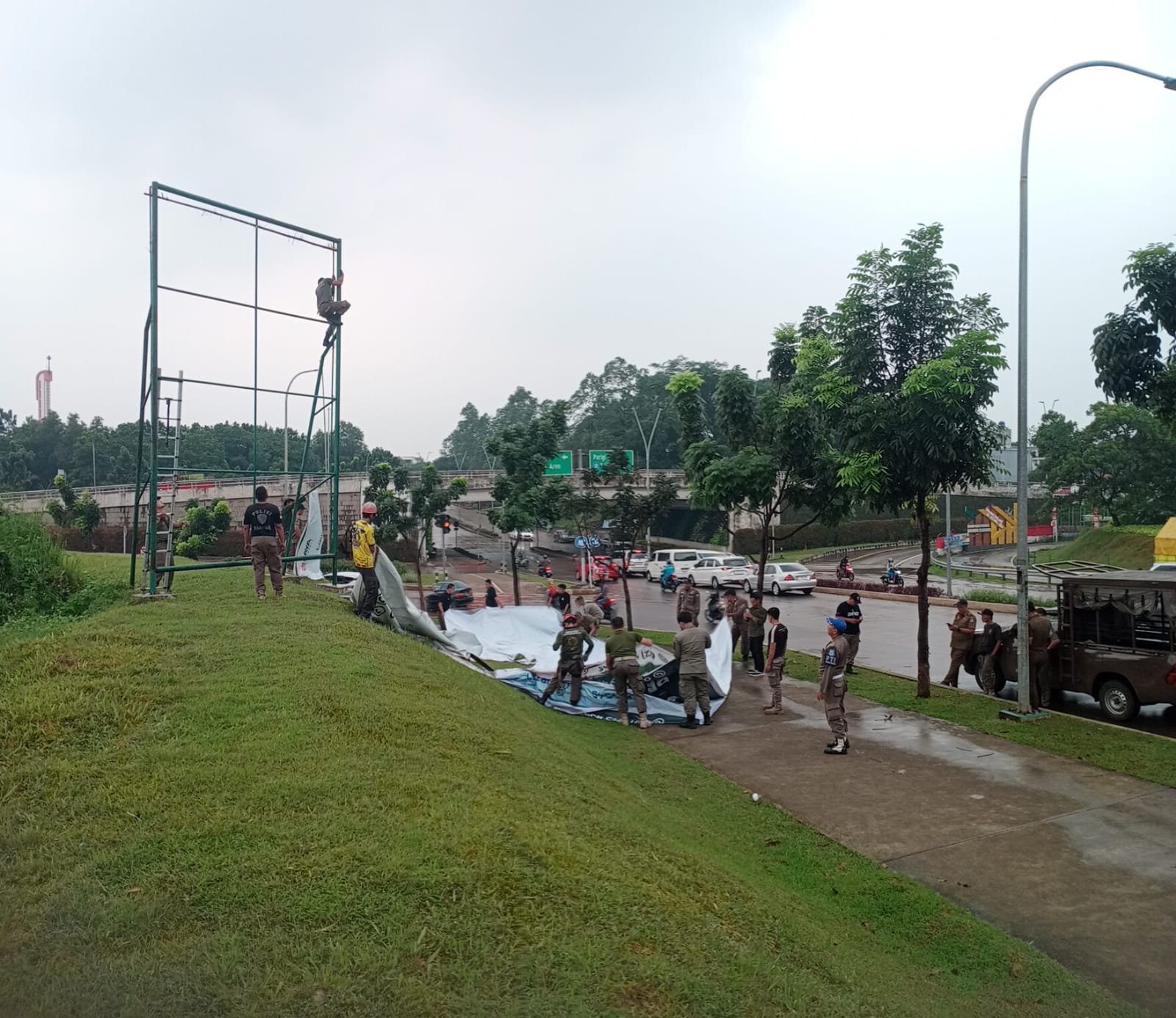 siber.news | Satuan Polisi Pamong Praja (Satpol PP) Kota Tangerang Selatan terus menggencarkan penertiban reklame tanpa izin di sejumlah titik strategis. Dalam operasi penegakan peraturan daerah (OPP) yang digelar, Sedikitnya, sebanyak 37 alat peraga reklame tak berizin berhasil diturunkan petugas.