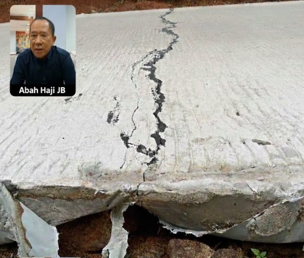 Melalui pesan singkat pada Minggu (22/2/2026), pria yang akrab disapa Abah Haji JB ini menyatakan bahwa sanksi harus diberikan jika audit menemukan ketidaksesuaian. Hal ini merespons laporan foto kerusakan jalan beton yang sudah retak dan berlubang di bagian bawahnya.