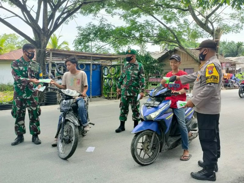 Sumut, Siber | Babinpotmar Lanal Tanjung Balai Asahan (TBA) Pelda Ranto Damanik bersama Babinsa, Bhabinkamtibmas dan perangkat desa bersinergi melakukan upaya mencegah penyebaran Covid-19, yakni dengan sosialisasi protokol kesehatan sekaligus membagikan masker gratis kepada masyarakat di Wilayah Kel. Pematang Pasir Kec. Teluk Nibung Tanjungbalai, Rabu (31/3/2021).