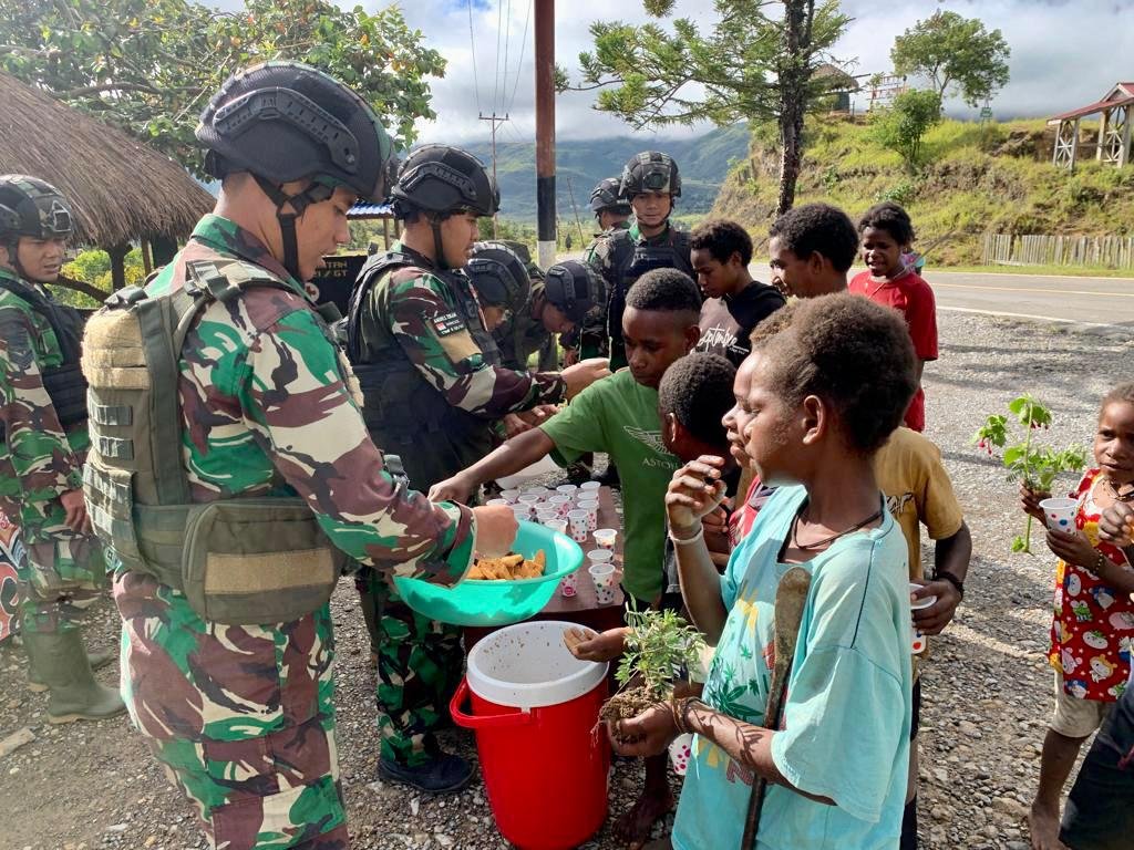 Nduga, Siber | Peduli akan pertumbuhan dan kebutuhan gizi generasi muda Papua, Satgas Yonif Raider 321/GT/13/1 Kostrad Pos Napua membagikan tambahan gizi berupa minuman susu kepada anak-anak siswa SD YPGI Napua, bertempat di Distrik Napua, Kabupaten Jayawijaya, Papua.