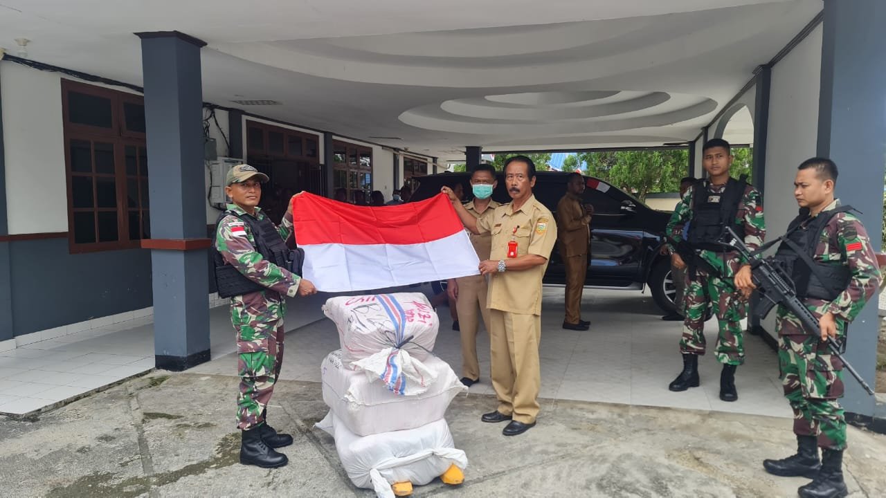 Sinergitas Tanpa Batas, Pemda Kabupaten Keerom Serahkan 3.000 Bendera Merah Putih Kepada Satgas Yonif 126/KC
