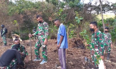 Peduli Terhadap Lingkungan, Satgas Pamrahwan Yonif RK 751/VJS Menanam 70 Pohon Untuk Mencegah Terjadinya Longsor