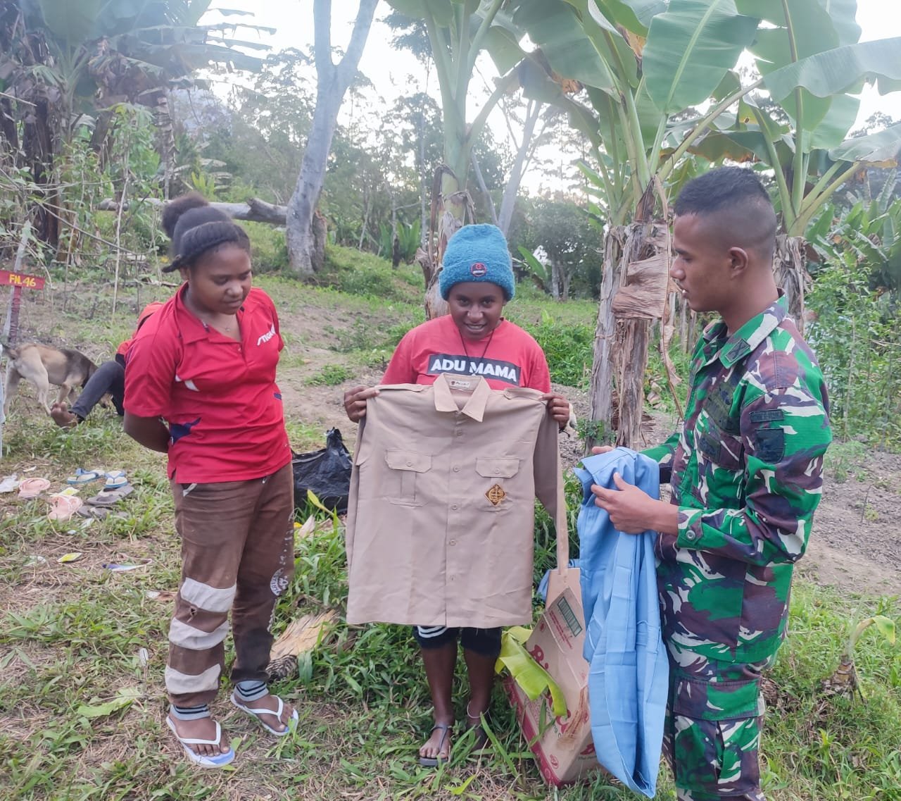 Salah satu warga yang merupakan mama mama yaitu Mama Walma Gwijangge (42) menyampaikan ucapan terima kasih atas kepedulian TNI. “Ini tanda kasih dari Satgas TNI kepada kita, sudah diberikan baju, terima kasih, wa wa,” ungkapnya.