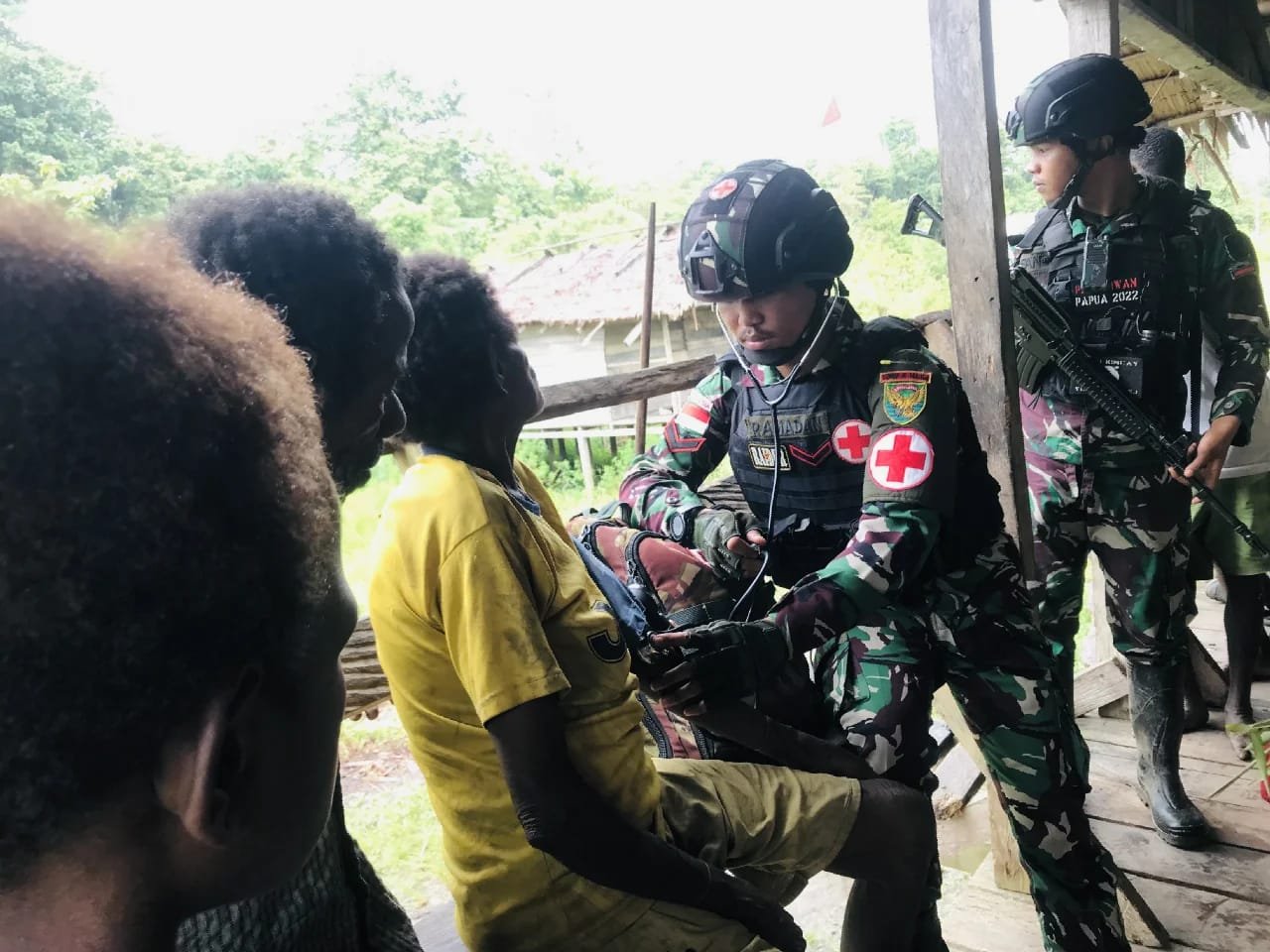 Tampak rasa haru terlihat dengan kedatangan Satgas bersama tim kesehatannya yang memeriksakan kesehatan warga. Adapun dari kegiatan pelayanan kesehatan keliling kampung, diperoleh beberapa yang mengeluhkan sakit, atas nama Bapak Elis Ibini (41 th), Bapak Yerry Kekei (54 th) Bapak Petrus Kekei (44 th) dan Mama Terry Kekei (58 th) dengan Diagnosa yaitu demam dan pusing-pusing.