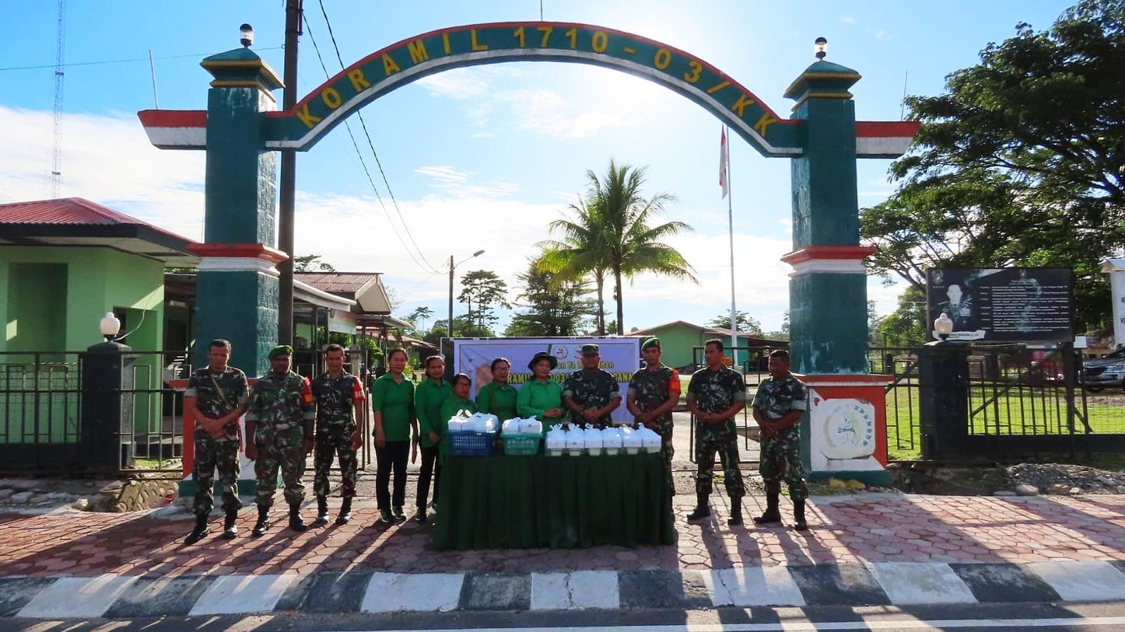 Pgs Danramil 1710-03/Kuala Kencana yang didampingi oleh Ketua Persit Ranting 04 Koramil 03/Kuala Kencana bersama anggota personel Koramil dan Persit membagikan 100 paket takjil gratis kepada para pengemudi dan pengendara kendaraan bermotor.