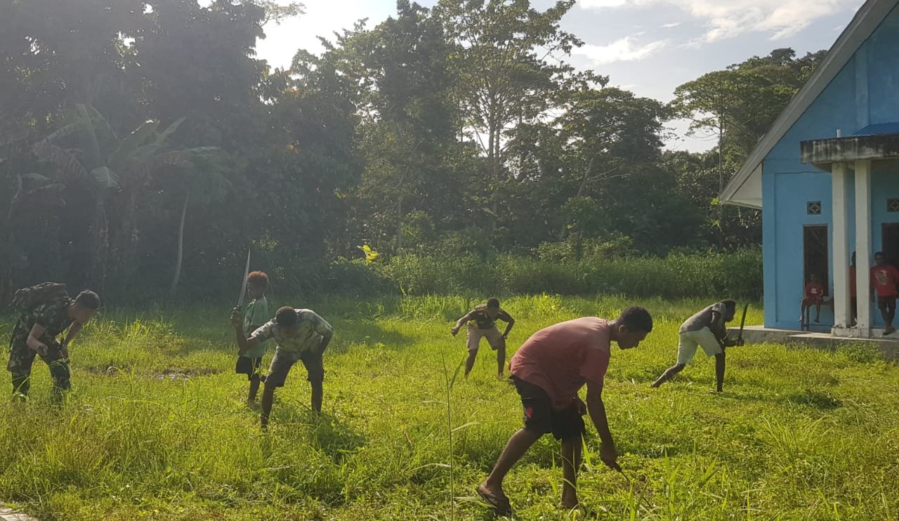 Wujud Toleransi, Satgas Yonif 143/TWEJ Ajak Warga Bersihkan Gereja di Perbatasan RI-PNG